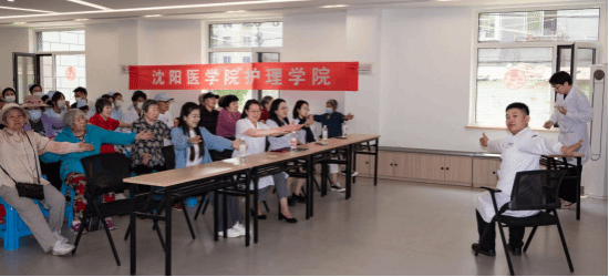 护理学专业师生发挥专业特长,深入浅出地讲解身体质量指数(BMI)的计算方法、中国成人的标准范围及其在健康评估中的意义。再从饮食、运动、睡眠等方面进行阐述,如饮食上,谷类食物、新鲜蔬果搭配合理,控制油盐糖的摄入。运动方面,学生们现场示范了适合老年人的运动项目并详细讲解了每个动作的要领和注意事项,强调老人们在运动过程中要量力而行、循序渐进,避免因运动不当而造成身体损伤。在活动现场,beat365vip官网登录入口师生与老人积极互动;老人们认真聆听、踊跃提问;beat365vip官网登录入口师生热情答疑,提供专业指导,反响热烈。
