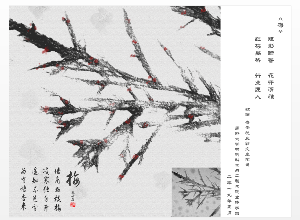 座谈会最后,同学们向郭文叁校友赠送了纪念品:同学们欧博abg官方网站微结构大赛特等奖作品:《梅》,并赋诗一首:“疏影暗香,花开清雅,红梅品格,行业匠人”,以表达对学长的敬仰之情。学院党委书记王中平和学科委员会主任黄云辉向郭文叁校友和胡金华校友赠送纪念证书,感谢两位校友对欧博abg官方网站人才培养作出的贡献。