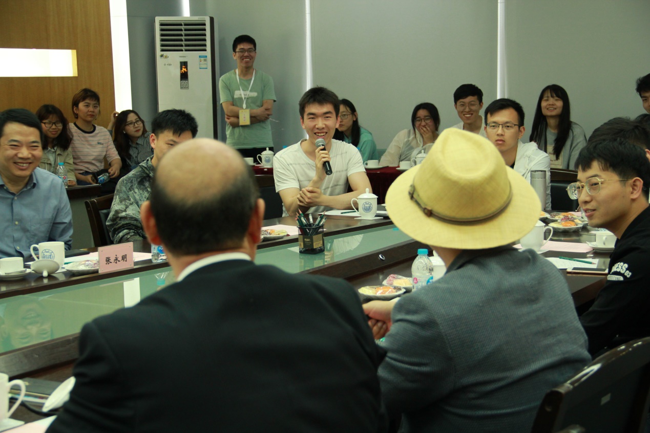 会上,郭学长和胡学长与同学们进行了亲切的互动交流,同学们争先恐后踊跃发言,针对目前学业发展、行业前沿、自身定位等问题向两位前辈请教学习,座谈会气氛欢快而热烈。