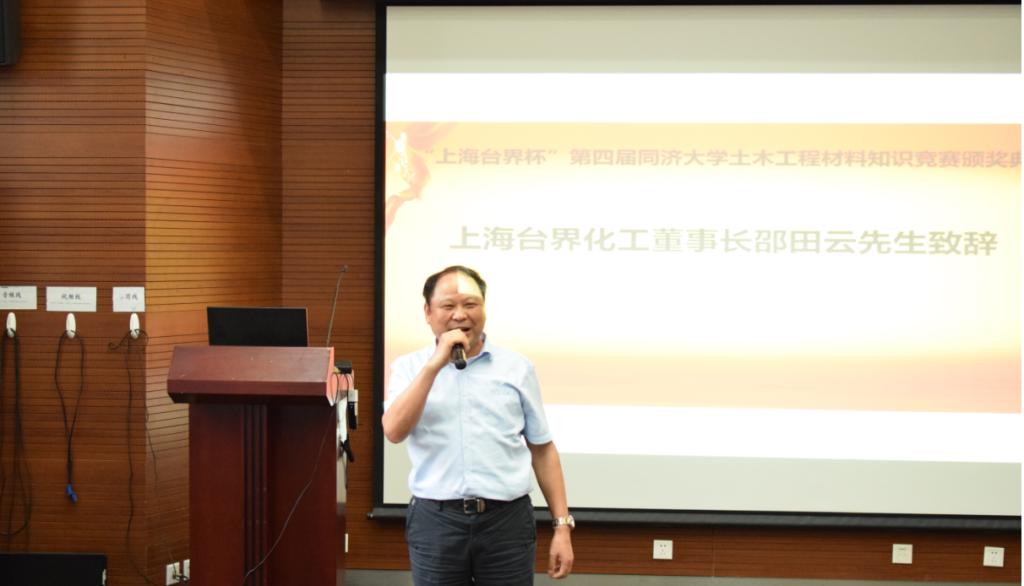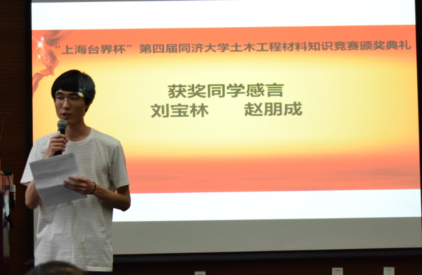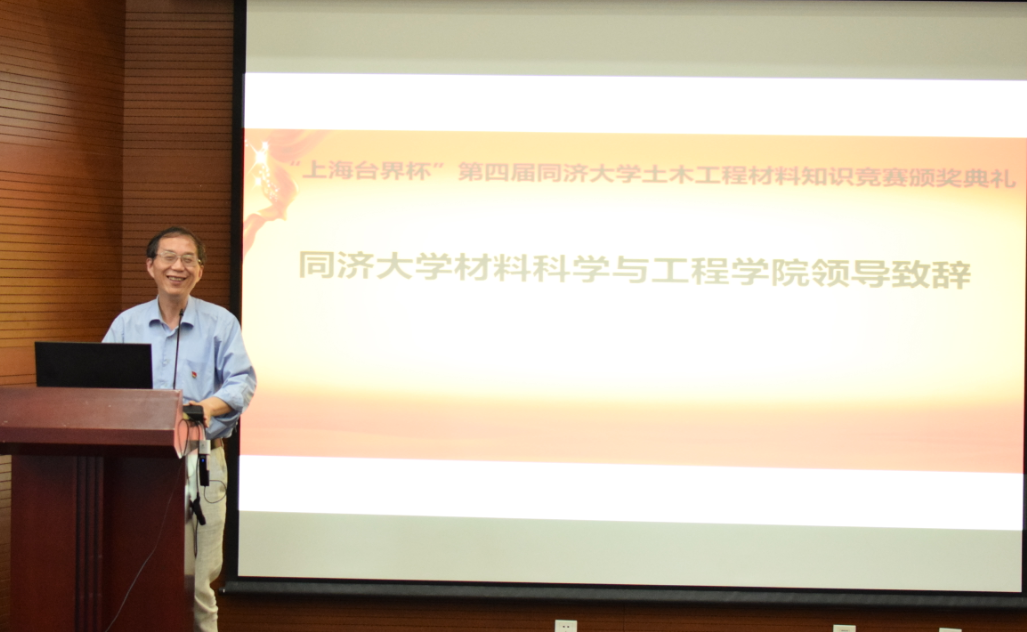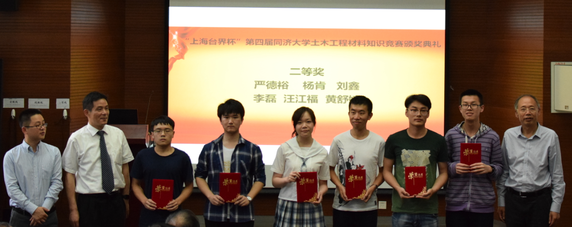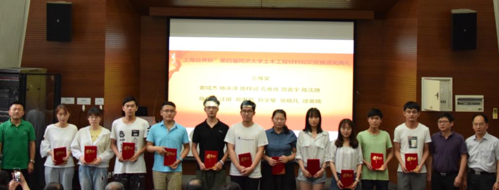 由欧博abg官方网站土木工程材料系、上海市土木工程学会、上海市混凝土行业协会、上海市建筑材料行业协会、上海市硅酸盐学会和上海市绿色建筑协会绿色建材专业委员会主办,上海台界化工有限公司协办的“上海台界杯”第四届欧博abg官方网站土木工程材料知识竞赛颁奖仪式,于2019年6月4日下午在欧博abg官方网站嘉定校区德才楼二楼报告厅成功举行。