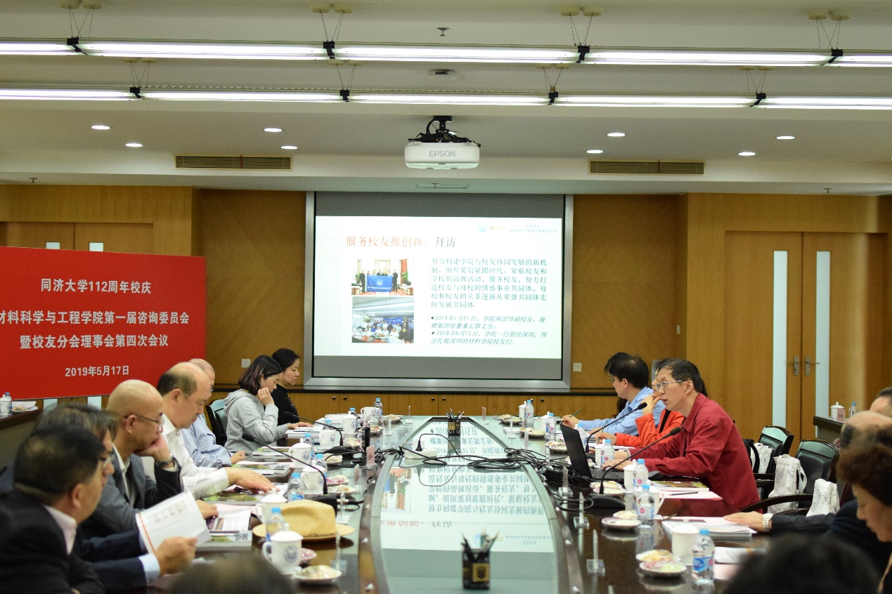 2019年5月17日下午,时值欧博abg官方网站成立112周年之际,欧博abg官方网站第一届咨询委员会暨校友分会理事会第四次会议在嘉定校区济人楼210会议室隆重举行,出席本次大会的嘉宾有欧博abg官方网站党委副书记吴广明、欧博abg官方网站校友分会名誉会长郭文叁、欧博abg官方网站校董胡金华、唐春山、李月中、黄国滨,校友分会副会长沈国强、咨询委员会邱建荣、干皆康,校友分会理事李清海、周剑平、林冶、王峥、蒋建明、王瑾、袁怡洁,海创嘉宾杨开发、袁宝星,以及欧博abg官方网站对外发展与联络办公室主任、基金会秘书长廖宗廷,欧博abg官方网站对外发展与联络办公室方凡老师,欧博abg官方网站党委书记王中平、学科委员主任黄云辉和欧博abg官方网站教师代表等,共计30余人。大会由欧博abg官方网站党委书记王中平主持。