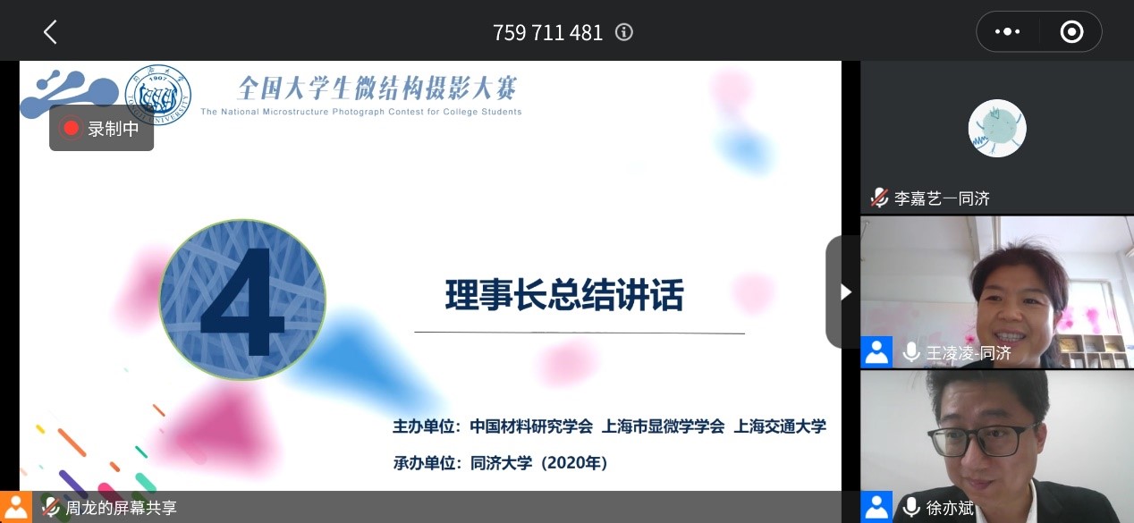 大赛秘书长徐亦斌受曾毅理事长的委托发表总结讲话,希望各理事单位持续引导材料专业学子培养学科兴趣,提高学生和导师的学术积极性,挖掘和培养材料研究后备人才,为学科发展贡献力量。他感谢大家的热情参与和长期支持,肯定了欧博abg官方网站作为承办方对2020年全国大学生微结构摄影大赛做出的诸多努力,感谢欧博abg官方网站在疫情期间勇于担当,负责承办此次大赛,预祝明日大赛决赛圆满成功!最后,各理事单位再次预祝大赛决赛圆满顺利举行。