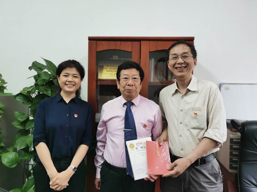 报告会之前,李占才教授与学院进行了交流,作为一名退休教师,李老师一直奔赴在传播正能量的道路上,王中平书记向李老师赠予书籍致谢留念。