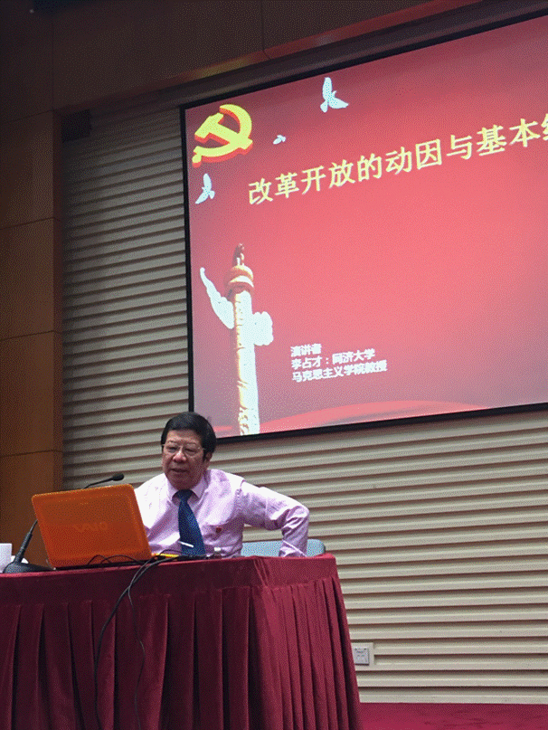 今天有幸聆听了李占才教授的当时宣讲,感受颇深。李占才老师博闻强识,通古博今的党史基础,令我叹为观止。并深深的为我党建立的艰辛感到强烈的共鸣。李占才老师主要讲解了我党实施改革开放的被迫性,为我们徐徐讲述了我党在国家建设中的曲折与自我革新。这使我了解到,我党并不具备有神性,而是具备有人性的。我感悟到前进的道路是曲折不平的,前进的目标的坚贞不移的,前进的手段是可以多种多样。教条主义,苏修思想,资本主义都是不完全适合我国的,党只有坚持带领人民走适合中国发展的社会主义道路,才能带领人民走向共同富裕。