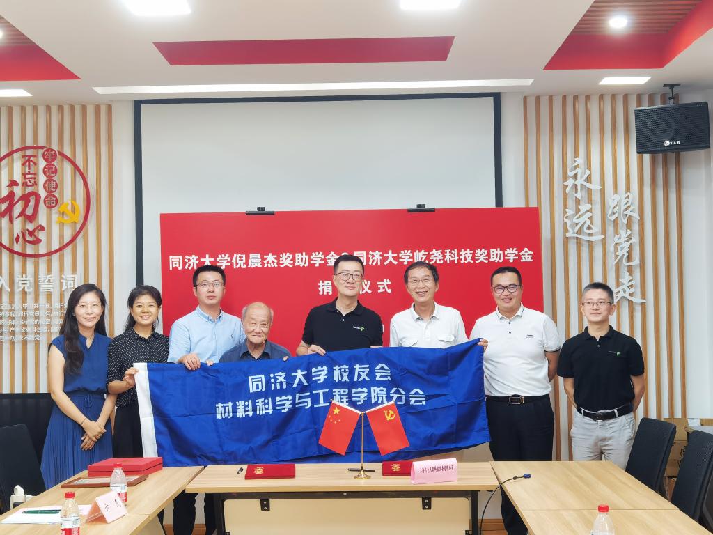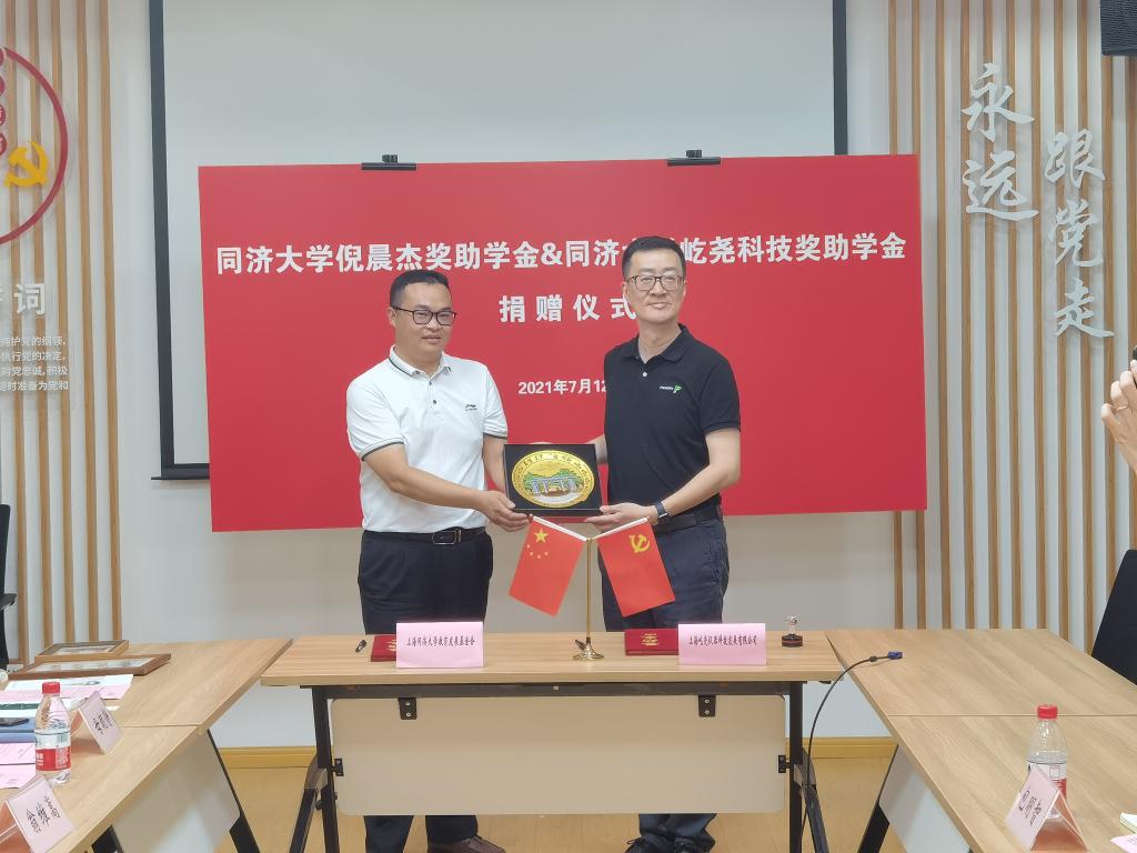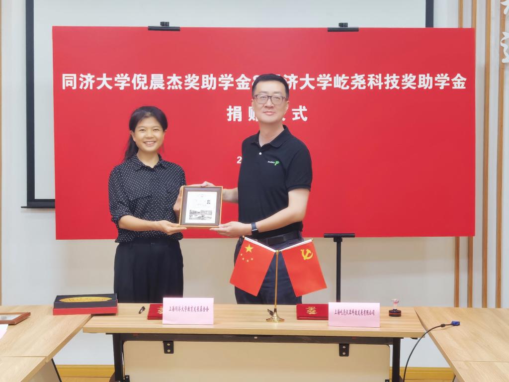倪晨杰校友现任上海屹尧仪器科技发展有限公司总经理,为感谢母校欧博abg官方网站及欧博abg官方网站的培育之恩,并积极拓展校企产学研合作,分别在欧博abg官方网站与化学科学与工程学院设立“欧博abg官方网站倪晨杰奖助学金”与“欧博abg官方网站屹尧科技奖助学金”,奖励和资助两学院学生,激励学生努力学习,培养更多优秀基础学科学子,胸怀家国、建功立业。仪式上,倪晨杰校友与教育发展基金会副秘书长梁春江签署捐赠协议。倪晨杰向梁春江赠与捐赠支票,梁春江向倪晨杰颁发捐赠证书,王凌凌向倪晨杰赠送学籍卡,母朝静向倪晨杰赠送同济纪念品。